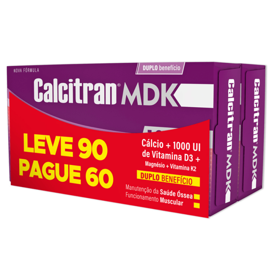 O Calcitran Mdk é um suplemento alimentar para o tratamento de carências de cálcio e vitamina D. Aqui você leva 90 Comprimidos!